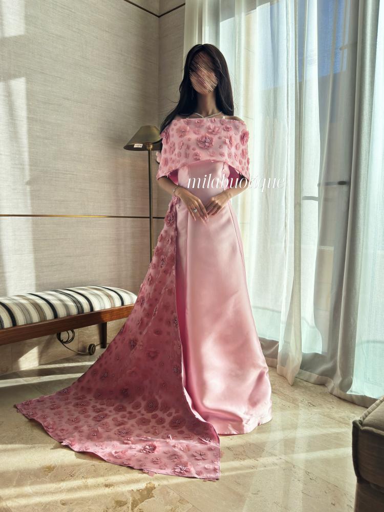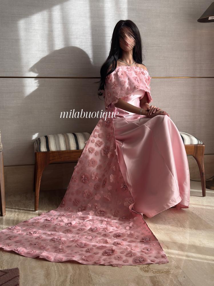 القماش ميكادو فخم مع تفاصيل الورد وذيل 💞💞
