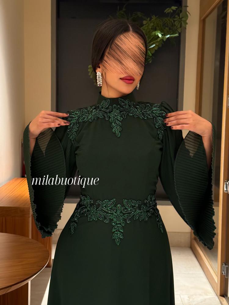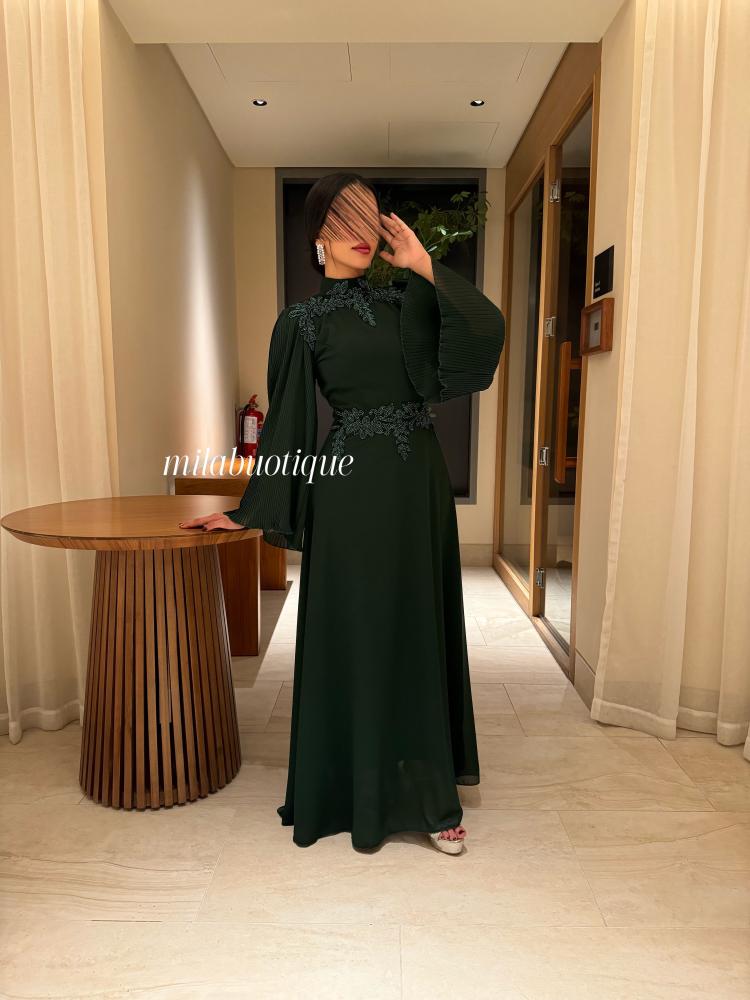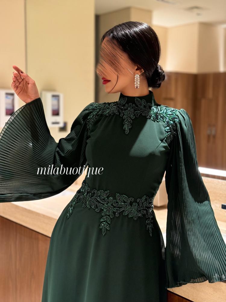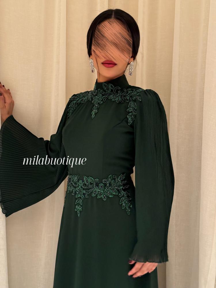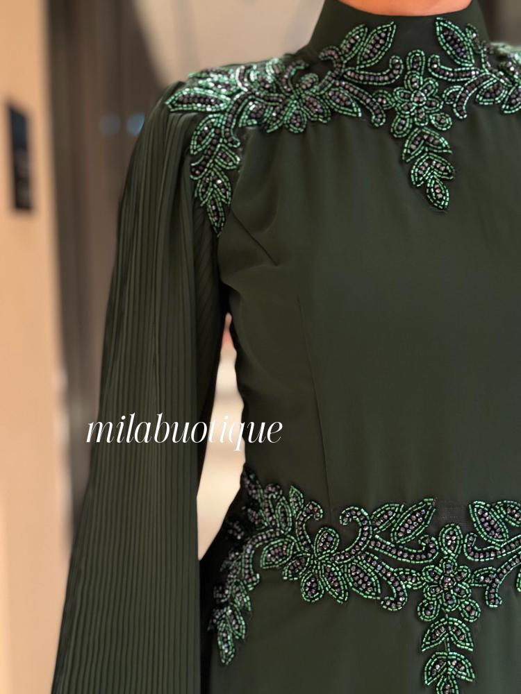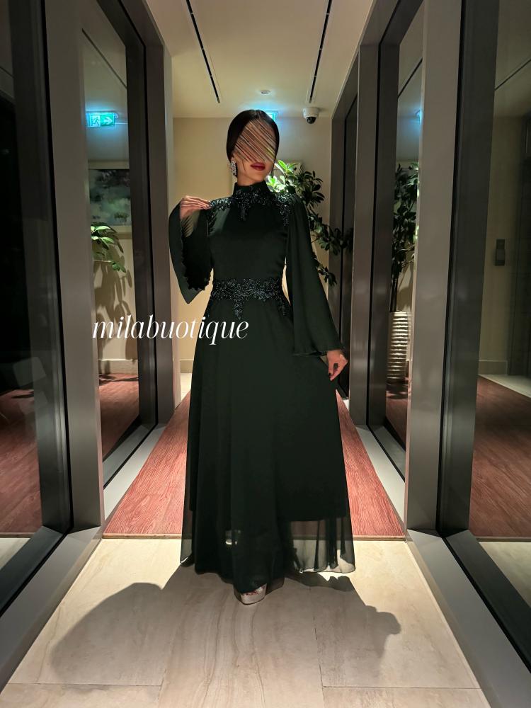 القماش : جورجيت مع تطريز مباشر على القماش والاكمام بوليسية
